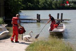 Oö: Verletzter Schwan von der Feuerwehr aus der Enns gerettet
