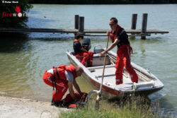 STEYR (OÖ): Ein Schwan mit einer schweren Verletzung musste Montagnachmittag, 5. Juni 2017, vom Wasserzug der Feuerwehr Steyr aus der Enns gerettet werden.