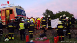 ST. PÖLTEN (NÖ): Am Mittwoch, den 7. Juni 2017, wurde die Freiwillige Feuerwehr St.Pölten – St.Georgen zu einer Menschenrettung gerufen. Auf der bekannten Eisenbahnkreuzung B20 / Ochsenburgerstraße (gesichert mit einer Lichtanlage) war es zu einem Zusammenstoß zwischen einen Eisenbahntriebwagen und einem Pkw gekommen.