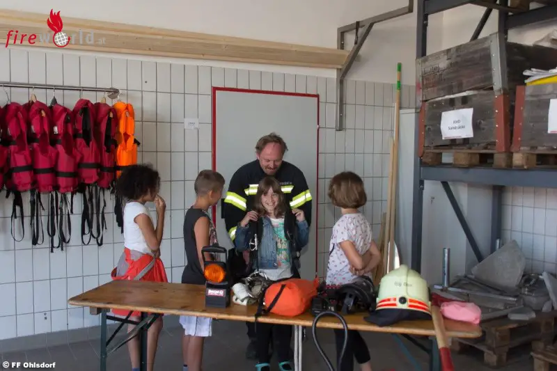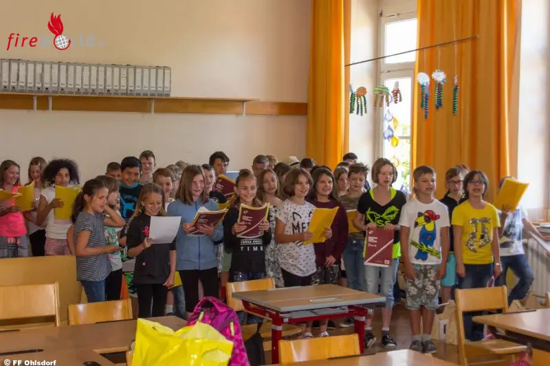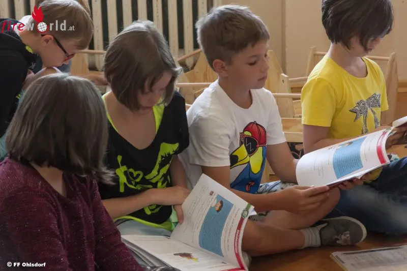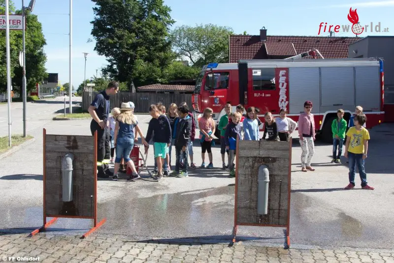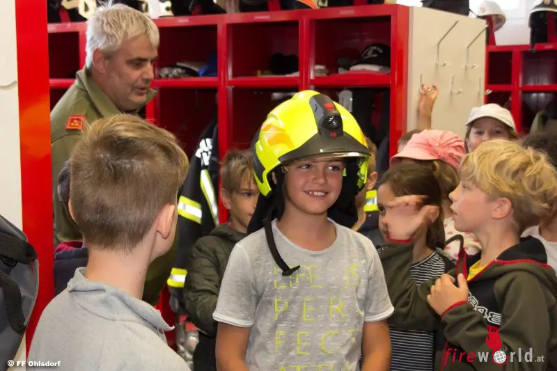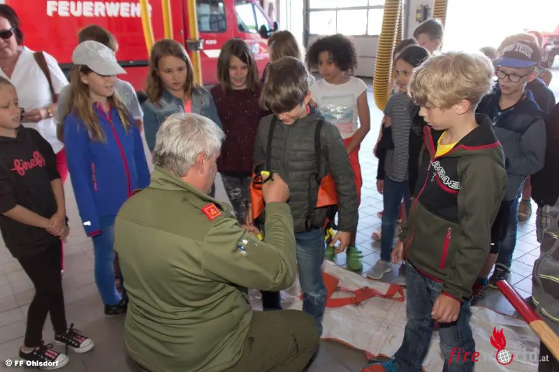 OHLSDORF (OÖ): Bereits zum fünften Mal wurde in den dritten Klassen der Volksschule die Brandschutzerziehung G.S.F. – GEMEINSAM.SICHER.FEUERWEHR durchgeführt. Am 8. Juni 2017 besuchten zwei Klassen der Volksschule Ohlsdorf die Feuerwehr Ohlsdorf im Gerätehaus in Ohlsdorf.