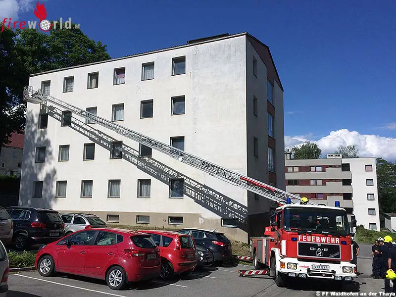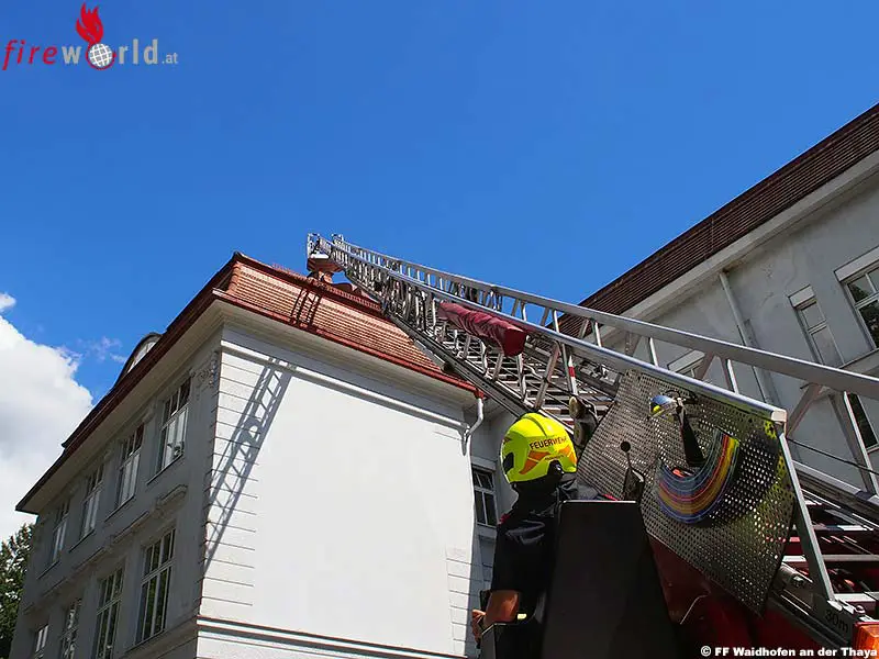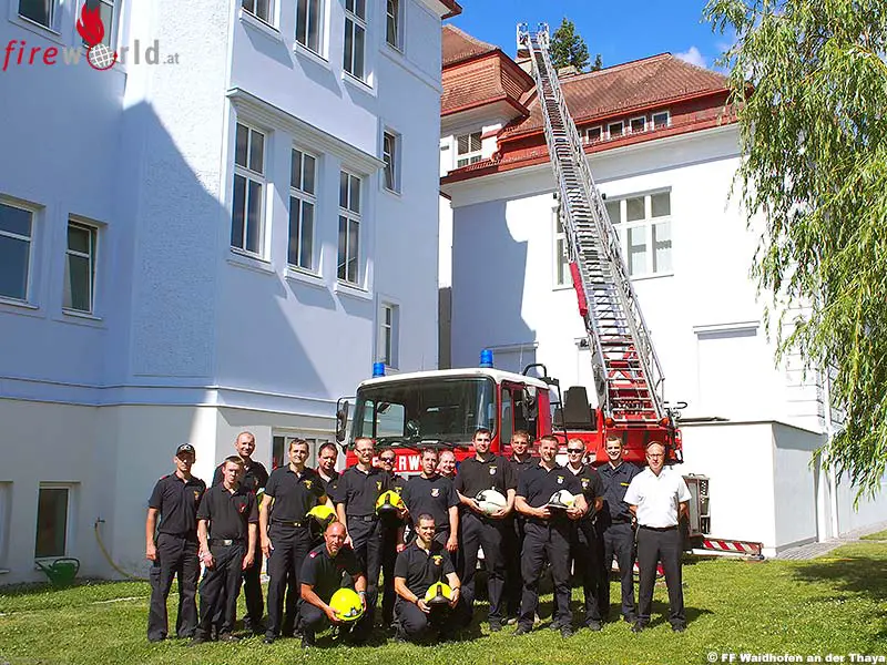 WAIDHOFEN AN DER THAYA (NÖ): In einer Gemeinschaftsaktion der Feuerwehren Gmünd, Hollabrunn, Horn und Waidhofen/Thaya wurde am 10. und 11. Juni 2017 ein Drehleiter- bzw. Teleskopmastbühne-Ausbildungstag der besonderen Art organisiert. Für dieses Seminar reisten zwei deutsche Feuerwehrkameraden aus Hamburg an.
