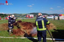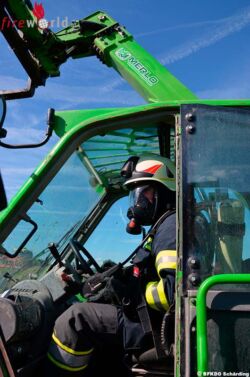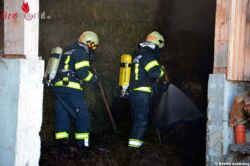Im Zuge eines Erstangriffs unter Atemschutz konnte die Ausbreitung der Flammen auf das Gebäude selbst bzw. die landwirtschaftlichen Maschinen erfolgreich verhindert werden. In weiterer Folge wurde die Wasserversorgung durch einen naheliegenden Löschwasserbehälter sichergestellt. Mittels eines Teleskopladers, welcher von einem Atemschutzträger gelenkt wurde, konnten die gepressten Ballen ins Freie gefahren und dort in mühevoller Handarbeit – teilweise auch nur unter Atemschutz – getrennt und abgelöscht werden.