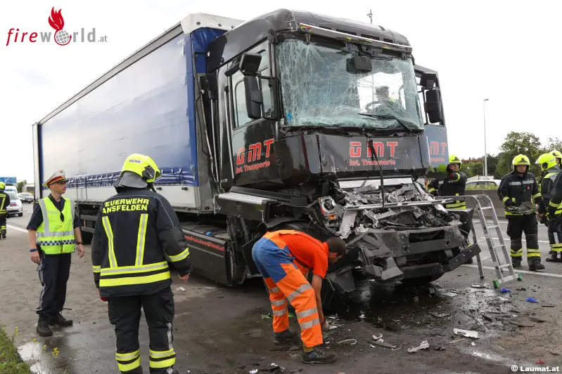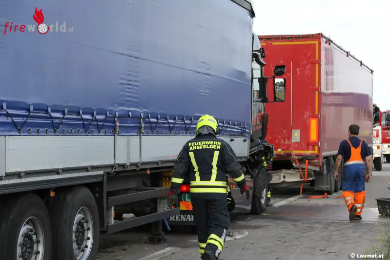 Ein Lkw fuhr auf ein Schwerfahrzeug auf, der Lenker wurde durch den Unfall im deformierten Führerhaus eingeschlossen und musste von der Feuerwehr befreit werden. "Beim Eintreffen am Einsatzort fanden wir eine eingeschlossene Person, die von der Feuerwehr aus dem Fahrzeug befreit, dem Notarzt übergeben und dann von der Rettung abtransportiert wurde, vor. Die Anfahrt hat sich relativ schwierig gestaltet, weil das erste Fahrzeug ist fast 10 Minuten im Stau gestanden. Sie haben dann durchgegeben, dass die Polizei die Straße gesperrt hat und wir gegen die Fahrbahn auffahren können, weil die Rettungsgasse wieder einmal nicht funktioniert hat. Das ist ein großes Problem. Es ist fast bei jedem größeren Einsatz auf dieser Strecke, dass die Rettungsgasse nicht funktioniert," berichtet Harald Schreil, Einsatzleiter der Feuerwehr Freindorf.