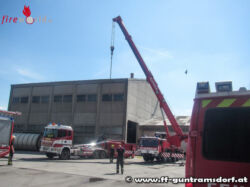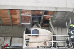 Nach Eintreffen des Kranfahrzeuges aus Mödling wurde dieses in Stellung gebracht um mittels Steig Mödling das Abluftrohr am Kranseil zu befestigen. Nachdem der „Rauchfang“ mit dem Kran gesichert war, wurde die Abspannung gelöst sowie der Spannring entfernt. Anschließend wurde der Rauchfang auf den Boden gehoben. Um 12.30 Uhr waren alle Arbeiten abgeschlossen und der Einsatz für die Feuerwehren beendet.