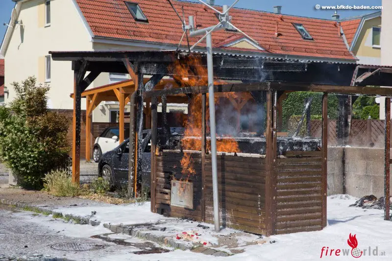 Anrainer endeckten zwar den Brand und alarmierten die Feuerwehr, jedoch konnten sich die Flammen rasch auf dem direkt angebauten Carport ausbreiten. Ein paar Fahrzeugeigentümer gelang es noch ihre Fahrzeuge in Sicherheit zu bringen. Bei einem der abgestellten Fahrzeuge war es aber nicht mehr möglich, da dieser binnen kürzester Zeit im Heckbereich komplett in Brand stand und aufgrund der enormen Strahlungshitze zu gefährlich für die Anrainer war. Bis zum Eintreffen der örtlichen Freiwilligen Feuerwehr Tribuswinkel bekämpfte ein beherzter Anrainer mit einem Gartenschlauch den Brand.
