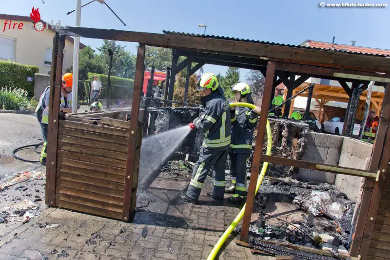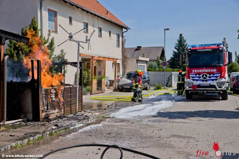 Nö: Brennende Müllinsel in Tribuswinkel → Gasleitung, Carport und Pkw in Brand geraten