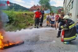Danach wurde noch von jeder Schülerin und Schüler ausgestattet mit Schutzausrüstung ein kontrollierter Kleinbrand mittels Pulverlöscher abgelöscht. Zum Abschluss wurden die Schüler mit den Feuerwehrfahrzeug zurück zur Volksschule gefahren. Für die Kinder, aber auch für die Feuerwehr Türnitz war dies ein freudiger Vormittag wo alle ihren Spaß hatten und sie gleichzeitig lernten, wie die größte Einsatzorganisation des Landes funktioniert und welche Möglichkeiten und Geräte der Feuerwehr zur Brand- und Unfallbekämpfung zur Verfügung stehen.