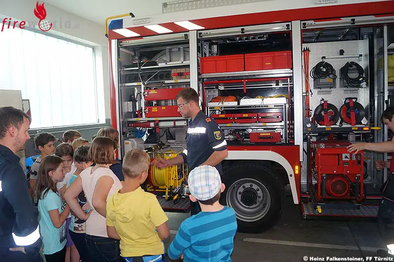 TÜRNITZ (NÖ): Am Montag, den 12. Juni 2017, war die 3. Klasse Volksschule Türnitz zu Besuch bei der freiwilligen Feuerwehr. Kommandant OBI Christoph Pfeffer begrüßte gemeinsam mit den beiden Jugendbetreuern die Volksschüler und die Lehrerinnen recht herzlich.