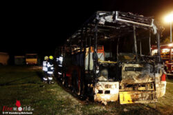 HITZENDORF (STMK): Aus noch unbekannter Ursache kam es am 16. Juni 2017 auf einem Lagerplatz zu einem Brand eines abgestellten, ausrangierten Autobusses. Nachdem der Einsatzort nur wenige hundert Meter vom Rüsthaus der Feuerwehr Hitzendorf entfernt liegt, wurde in der Erstalarmphase um 03.01 Uhr die Freiwillige Feuerwehr Hitzendorf auch die Feuerwehr Berndorf alarmiert.