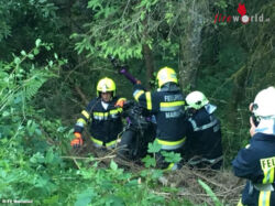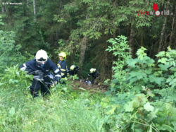Während der Lenker zum Glück unverletzt auf der Fahrbahn zum liegen kam, stürzte sein Motorrad über eine Böschung 15 Meter einen steilen Hang hinuter. Mit dem SRF-Hebekran der FF-Mariazell wurde das Motorrad geborgen und abtransportiert. Die Straße wurde dazu kurzzeitig gesperrt.