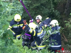 Stmk: Bergung eines über steilen Hang gestürztes Motorrad auf der B24