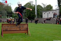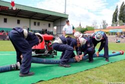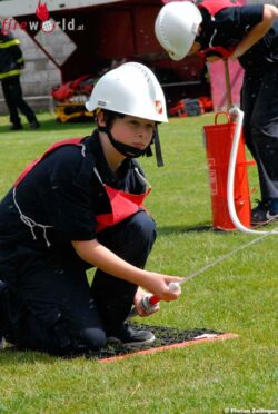 Im Anschluss wurde es für die Jugendgruppe ernst. Tobias Eschner führte die Jugendlichen als Gruppenkommandant zur Bewerbsbahn. Mit 100 Sekunden, aber leider 50 Fehlerpunkten konnte die Hindernisstrecke bewältigt werden. Nach dem darauffolgenden Staffellauf, trat die Gruppe in Silber nochmals an. Der Unterschied liegt darin, dass im Silber-Bewerb die einzelnen Wettkampfpositionen gelost werden. Jeder Feuerwehrjugendliche muss daher jede einzelne Funktion innerhalb der Gruppe beherrschen. Beim Bronze-Bewerb hingegen stehen die Positionen innerhalb der Gruppe fest. Dieser Modus gilt sowohl für die Feuerwehrjugend, als auch für die Aktivmannschaften.