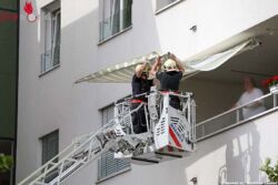 WELS (OÖ): Die Feuerwehr Wels musste Freitagnachmittag, den 16. Juni 2017, nach starken Windböen eine defekte Sonnenmarkise in einem Alten- und Pflegeheim in Wels-Vogelweide sichern.