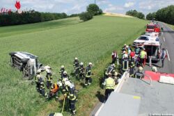 RIEDAU (OÖ): Aus noch ungeklärter Ursache kam am Samstag, den 17. Juni 2017, der Lenker eines Firmenbusses auf einem fast geraden Teilstück der Innviertler Bundesstraße B137 im Gemeindegebiet von Riedau auf die Gegenfahrbahn und anschließend über eine kleine Böschung in das angrenzende Feld.