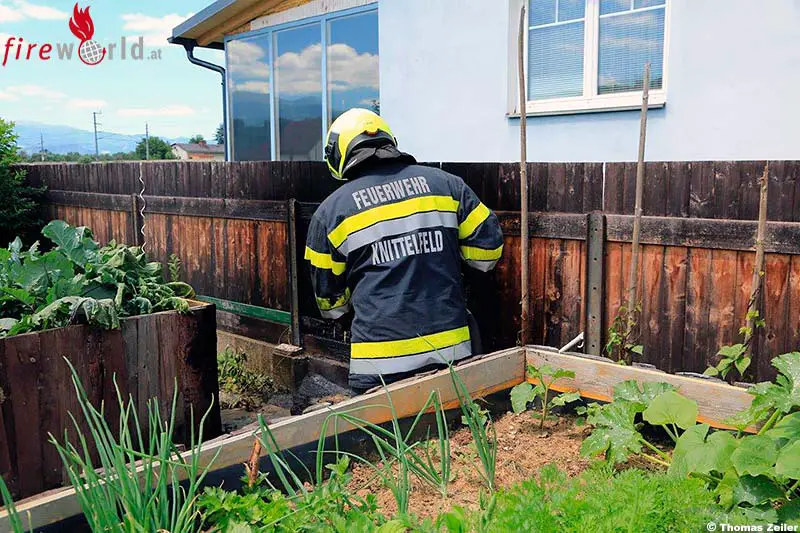 KNITTELFELD (STMK): Ein Übergreifen eines Brandes auf ein benachbartes Wohnhaus verhinderten 20 Feuerwehrmänner am 18. Juni 2017 in Knittelfeld. Aus nicht näher bekannten Umständen brach gegen 12:00 Uhr ein Brand im Garten eines Einfamilienhauses, im Bereich eines Komposthaufens, aus.