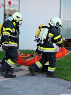 Nach und nach trafen die Feuerwehren ein, die Atemschutztrupps wurden aufgerüstet und von der Einsatzleitung der FF Reitern unter HBI Franz Loitzl mit den einzelnen Aufgaben beauftragt. Die Hitze außerhalb des Gebäudes, sowie auch die ungewöhnliche Wärme im Innern des Gebäudes verbunden mit der Bergung der vermissten Personen, setzten die Atemschutzgeräteträger ziemlich unter Stress. Der sichtbare Flüssigkeitsverlust war enorm, und so zeigte sich auch, wie wichtig das Mitführen von alkoholfreien Getränken in den Fahrzeugen ist. Jeder der neun Atemschutztrupps hatte eine andere Aufgabe, für jeden war jedoch auch die Personenbergung vorgesehen.