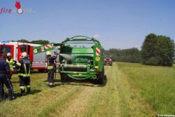 KURZENKIRCHEN (OÖ): Am 20. Juni 2017 wurden die Feuerwehren Pimpfing und Andorf zu einem „Brand KFZ“ nach Kurzenkirchen alarmiert, nachdem eine Ballenpresse während dem Betrieb überhitzte und Feuer gefangen hatte.