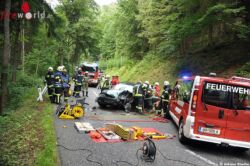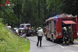 ALBERNDORF (OÖ): Bei einem Verkehrsunfall auf der Reichenauerstraße bei Riedegg wurde Mittwochnachmittag, den 21. Juni 2017, ein junger Mann schwer verletzt und in seinem Wagen eingeklemmt.