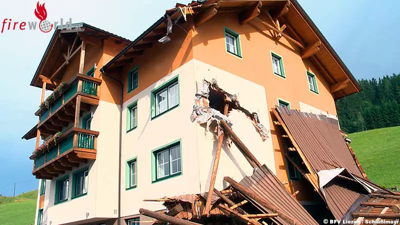 Ein Schlafzimmer im Wohngebäude wurde derart stark in Mitleidenschaft gezogen, daß die komplette Außenwand zerstört wurde und das Doppelbett mit Ziegeln überdeckt war. Glücklicherweise wurden keine Personen verletzt.