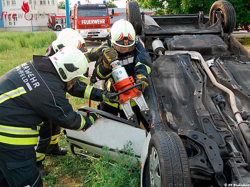 PINKAFELD (BGLD): Am Abend des 23. Juni 2017 fand am Gelände der ehemaligen PEW in Pinkafeld eine technische Einsatzübung statt. Die Übung wurde auf zwei Szenarien aufgeteilt. Übungsannahme waren jeweils ein Verkehrsunfall mit eingeklemmten Personen.