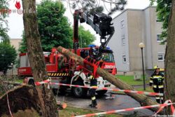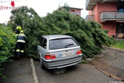 Fast im Sekundentakt trafen die Notrufe in der Leitstelle der Feuerwehr ein. In der Stadt Knittelfeld mussten die Feuerwehren Knittelfeld und Apfelberg zu mehreren umgestürzten Bäumen ausrücken die Verkehrswege blockierten. Durch die kurzen aber sehr heftigen Sturmböen fiel beispielsweise ein Baum auf ein geparktes Auto. Während der umgestürzte Baum entfernt wurde, gab es bereits den nächsten Einsatz, schildert Einsatzleiter, Löschmeister Daniel Schmied von der Feuerwehr Knittelfeld.