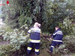 Stmk: Zwei umgestürzte Bäume von der Feuerwehr entfernt