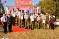 Nach dem Bürgermeisterempfang im Keltendorf von Mitterkirchen erfolgte die Schlussveranstaltung am Bewerbsgelände, konnte Landesbranddirektor Dr. Wolfgang Kronsteiner der selbst den Leistungsbewerb absolvierte, einige Ehrengäste begrüßen.