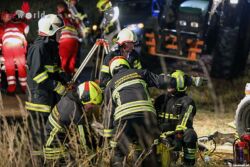 Der Lenker und ein Beifahrer wurden unter dem Fahrzeug eingeklemmt und mussten von der Feuerwehr befreit werden. Die Verletzten – eine Person wurde schwer, die zweite Person mittelschwer verletzt – wurden nach der Erstversorgung durch den Rettungsdienst sowie zwei Notärzte ins Klinikum Wels beziehungsweise ins Krankenhaus Ried im Innkreis eingeliefert. Die Feuerwehr richtete eine örtliche Umleitung ein.