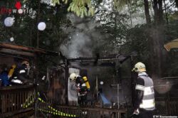 In der Gartenhütte kam es durchaus zu höheren Sachschäden. Durch den Brand ausgelaufene Lackdosen, die sich im Inneren befanden, wurden nach dem "Brand aus" fachgerecht gebunden und entsorgt.