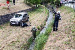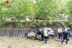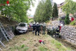 MÜHLDORF (NÖ): Am Dienstag, den 27. Juni 2017, gegen 15.00 Uhr stürzte in der Gemeinde Mühldorf ein Pkw über eine Stützmauer in ein Bachbett. Laut Erstmeldung waren mehrere Personen im verunfallten Fahrzeug eingeschlossen.