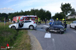 ANDORF (OÖ): Zu Aufräumarbeiten nach einem Verkehrsunfall auf der Andorfer Landesstraße wurde die Feuerwehr Andorf gegen 18.00 Uhr des 27. Juni 2017 alarmiert. Auf Höhe der Ortschaft Hof übersah ein etwa 20-jähriger Lenker aus dem Bezirk Ried beim Abbiegen in Richtung HTL den aus dem Ortszentrum entgegenkommenden Wagen eines ebenfalls 20-Jährigen aus Andorf, wodurch die beiden Fahrzeuge beinahe frontal kollidierten.