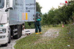 RIED IM TRAUNKREIS (OÖ): Die Feuerwehr wurde Freitagabend, 30. Juni 2017, zu einem Gefahrstoffaustritt auf die Pyhrnautobahn bei Ried im Traunkreis (Bezirk Kirchdorf an der Krems) alarmiert.