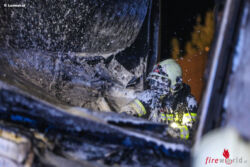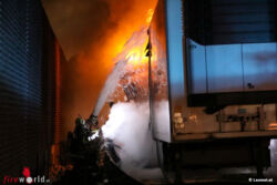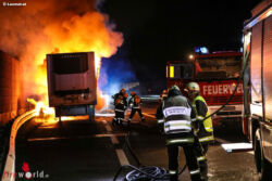 "Wir sind alarmiert worden von der Bezirkswarnstelle der Feuerwehr in Wels und haben bei der Anfahrt schon erfahren, dass der Lastwagen in Vollbrand steht. Der Lastwagen war im hinteren Bereich schon in Vollbrand. Ich habe dann den Chauffeur gefragt was brennt, was er für Ladegut mit hat. Er hat Brombeeren mitgehabt, also Obst. Wir haben dann mit den Löscharbeiten begonnen und mittels Schaum den Brand bekämpft. Ich habe dann die Feuerwehr Wels und Meggenhofen nachalarmiert zur Sicherheit," schildert Alexander Roiß, Einsatzleiter der Feuerwehr Geisensheim.