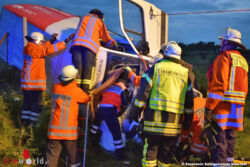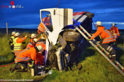 Nach einem Überholvorgang verlor der Fahrer eines in Belgien zugelassenen Lieferwagens die Kontrolle über das Fahrzeug, kam von der Straße ab und schleuderte in den Grünstreifen. Unter Einsatz von hydraulischem Rettungsgerät konnten die Einsatzkräfte den schwer verletzten Mann aus seinem Fahrzeug befreien und dem Rettungsdienst übergeben.