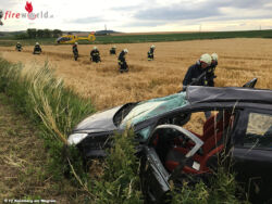 KIRCHBERG AM WAGRAM (NÖ): Kaum ein paar Stunden war das äußerst erfolgreiche Feuerwehrfest in Oberstockstall zu Ende, als die Sirene wieder zum Feuerwehralltag rief: Auf der L27 hatte sich gegen acht Uhr des 3. Juli 2017 ein Kleinwagen mit zwei Insassinnen überschlagen und war schwer demoliert in einem Gerstenacker gelandet.