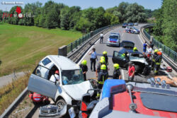 AMSTETTEN (NÖ): In den frühen Nachmittagsstunden des 5. Juli 2017 wurde die Freiwillige Feuerwehr Amstetten zu einem schweren Verkehrsunfall auf die B1 bei Straßenkilometer 132,0 alarmiert. Aus bisher noch ungeklärter Ursache kam ein junger Fahrzeuglenker von der Fahrbahn ab und prallte frontal gegen einen entgegenkommenden Pkw.