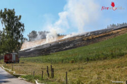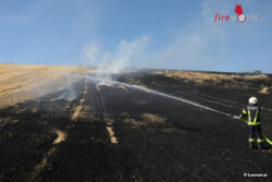 Bei Erntearbeiten geriet aus unbekannter Ursache ein Feld in Brand. Angefacht durch den Wind breiteten sich die Flammen rasch aus. Insgesamt acht eingesetzte Feuerwehren konnten den Brand rasch unter Kontrolle bringen. Verletzt wurde niemand.