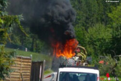 HITZENDORF (STMK): Am Mittwoch, den 5. Juli 2017, wurde die Feuerwehr Hitzendorf zu einem Traktorbrand gerufen. Die L 336 musste Stundenlang gesperrt werden.