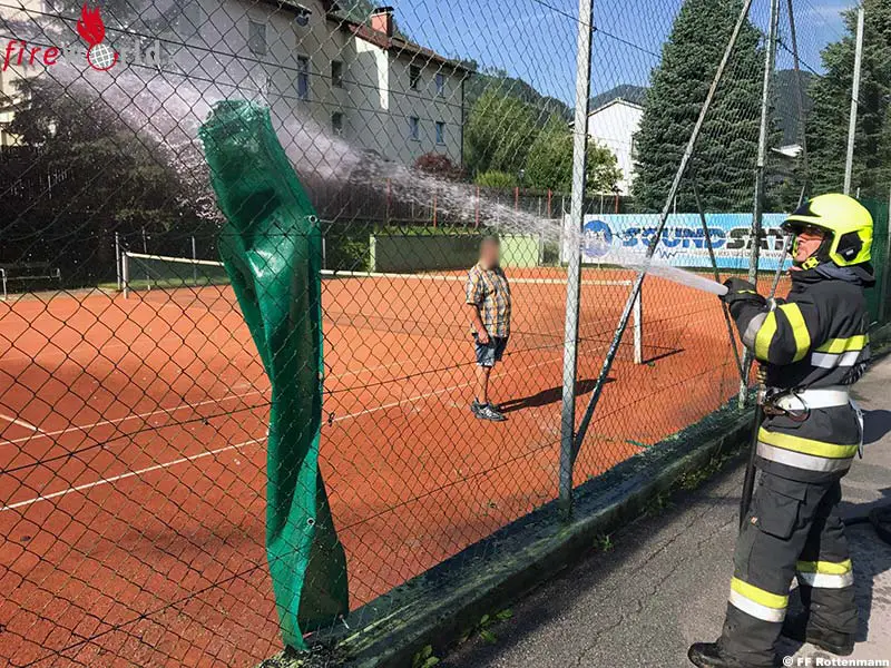 ROTTENMANN (STMK): Zu einem Brandeinsatz wurde die Freiwillige Feuerwehr Rottenmann am 7. Juli 2017 alarmiert. Aus noch ungeklärter Ursache kam es am Tennisplatz, an der Paltenpromenade, zum Brand eines Werbebanners.