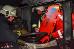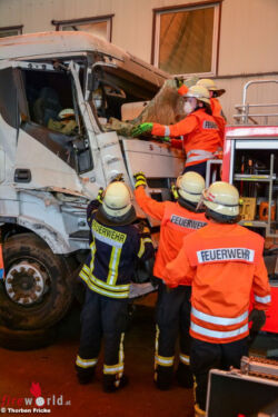 Deutschland: Anspruchsvolle technische Hilfeleistung geprobt: Lkw-Lenker-Rettung nach Auffahrunfall