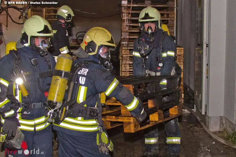 Nachdem keine weitere Brandausbreitung festgestellt wurde, mussten noch der komplette Garagentrakt mittels der Wärmebildkamera auf Glutnester abgesucht werden. Dazu entfernten die Feuerwehreinsatzkräfte weitere Holzpaletten, sowie ebenfalls gelagerte Kanister und verbrachten diese ins Freie. Mit dem Einsatz eines Hochleistungslüfters konnte der auch zum Teil verrauchte angebaute Firmentrakt entraucht werden. Die anwesenden Polizeikräfte übernahmen die ersten Erhebungen bezüglich der Brandursache. Ein ebenfalls alarmiertes Rettungsteam vom Roten Kreuz Bad Vöslau stand zum Schutz der Einsatzkräfte vor Ort in Bereitschaft.
