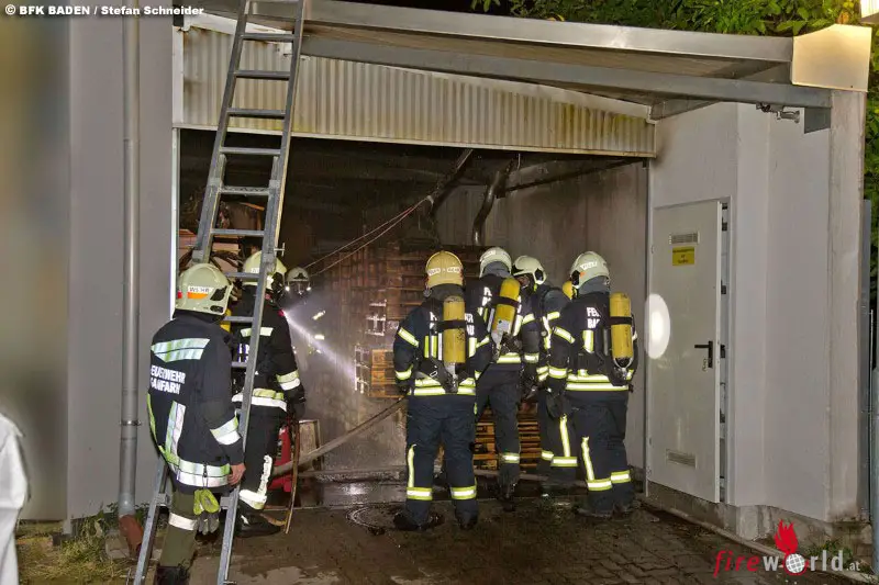 BAD VÖSLAU (NÖ): Kurz vor Mitternacht des 8. Juli 2017 wurden die Freiwillige Feuerwehr Stadt Bad Vöslau und die FF Gainfarn über die Feuerwehr Bezirksalarmzentrale (BAZ) Baden zu einem Brandeinsatz (Alarmstufe B2) mit Zusatz „Brand einer Garage“ direkt im Ortsgebiet von Bad Vöslau alarmiert.