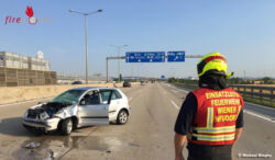 Kaum im Feuerwehrhaus eingerückt, meldete die Bezirksalarmzentrale einen weiteren Einsatz. Nach einem Verkehrsunfall in Fahrtrichtung Wien galt es einen VW Polo von der Autobahn zu bergen. Unverzüglich rückte die Feuerwehr Wiener Neudorf erneut mit vier Fahrzeugen zum Einsatzort aus. Am Unfallort führten die 18 ausgerückten Mitglieder die Bergung durch – Routinearbeit für die Männer der FF Wiener Neudorf.