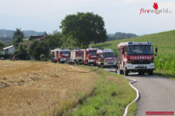 NEUHOFEN IM INNKREIS (OÖ): Am 09.07.2017 wurde die FF Neuhofen i.I. um 17:54 Uhr zu einem Feldbrand nach Leinberg alarmiert. Aufgrund der Informationen der Bezirkswarnstelle entschied sich der Einsatzleiter bereits am Weg zum Einsatzort die Alarmstufe 2 auszulösen.
