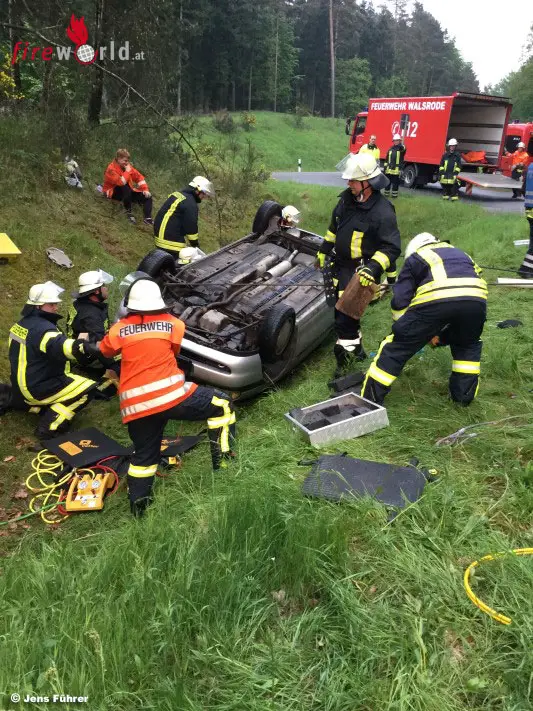 Deutschland: Zugübung Feuerwehr Walsrode → Pkw am Dach liegend, Verletzte eingeklemmt