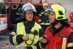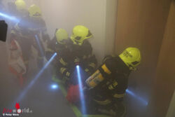 Nach der Lageerkundung durch die Einsatzleiter der Löschzüge 2 und 3 wurden die Aufgaben Gebiete koordiniert und gemeinsam mit der Rettung eine Einsatzleitstelle eingerichtet. Die drei eingesetzten Atemschutztrupps hatten alle Hände voll zu tun, um die vermissten Personen zu finden, dem Roten Kreuz zur Versorgung zu übergeben und anschließend den Brand zu löschen.