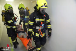 Folgendes Szenario wurde beübt: Im Kellergeschoss war durch Heißarbeiten ein Brand ausgebrochen. Dadurch wurden zwei Techniker verletzt, die auch dort bewusstlos zum Liegen kamen. Des Weiteren befanden sich zwei Bedienstete der Pflegeanstalt auch im Bereich der Brandausbruchsstelle. Durch die starke Rauchentwicklung haben drei Personen, die sich mit Rollstühlen fortbewegten, mit einer guten schauspielerischen Darbietung eine Rauchgasvergiftung erlitten.