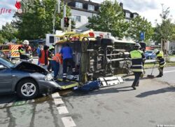 Das Rettungsfahrzeug aus der Steiermark war auf einer Rückholfahrt aus Slowenien unterwegs zum Krankenhaus Großhadern. Im Kreuzungsbereich der Würmtalstraße und Sauerbruchstraße kam es zum Zusammenstoß. Dabei kippte der Rettungswagen auf die Fahrerseite. Passanten setzten umgehend einen Notruf ab.
