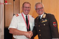 CTIF-Präsident Tore Eriksson aus Schweden und ÖBFV-Präsident Albert Kern stellten sich als erste Gratulanten ein und wünschten dem wiederbestätigten Vizepräsidenten weiterhin viel Erfolg für seine Tätigkeit auf dem internationalen Parkett des Feuerwehr- und Rettungswesens.