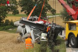 Ersten Informationen zufolge wurde eine Person leicht verletzt. Ein Betonmischer stürzte bei dem Unfall in ein Getreidefeld neben der Fahrbahn. Weil der Betonmischer voll beladen war, gestaltete sich die Bergung schwierig. Die Feuerwehr musste zuerst Betriebsmittel abpumpen und ausgelaufene Flüßigkeiten binden.